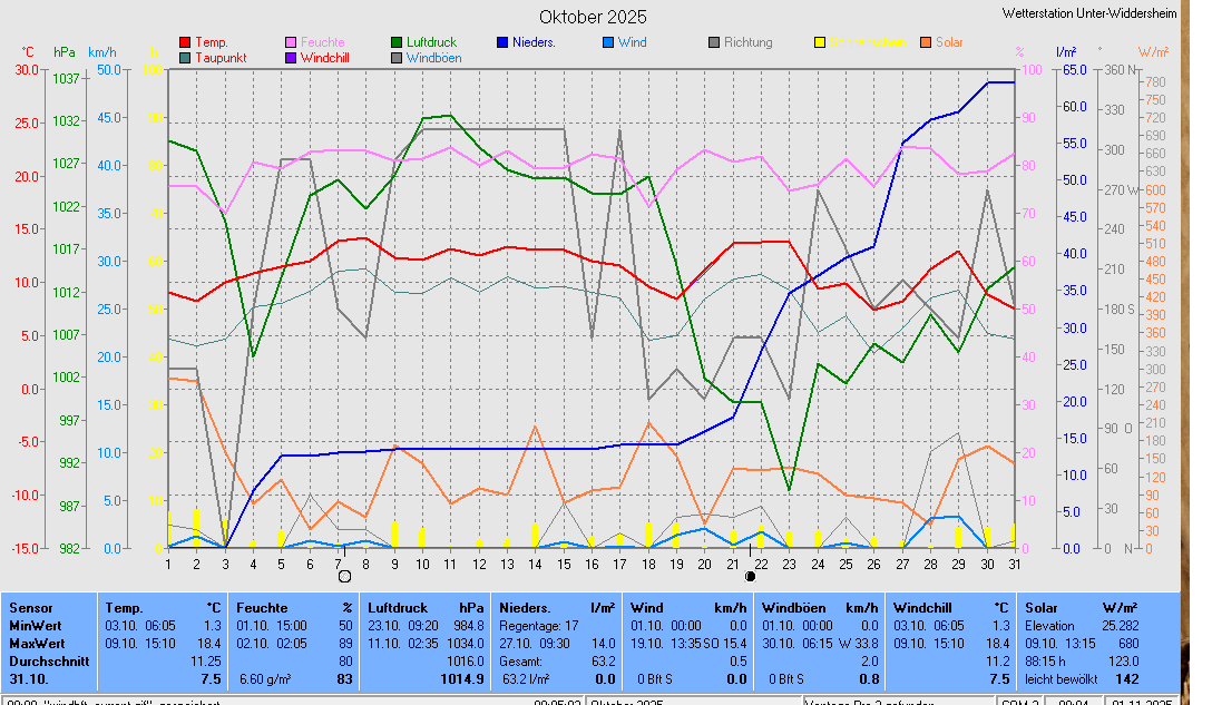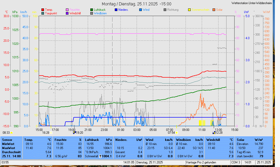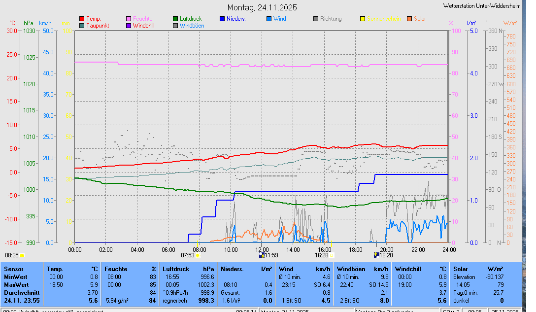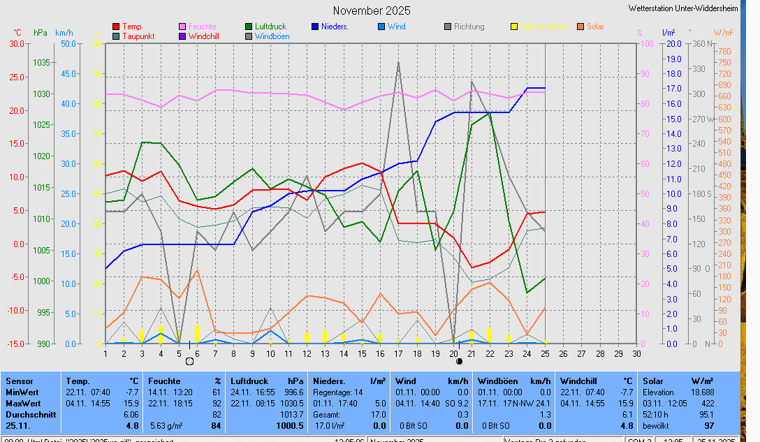 | letzter Regen | 19:15 24.11.2025 18 Stunden, 45 Minuten |